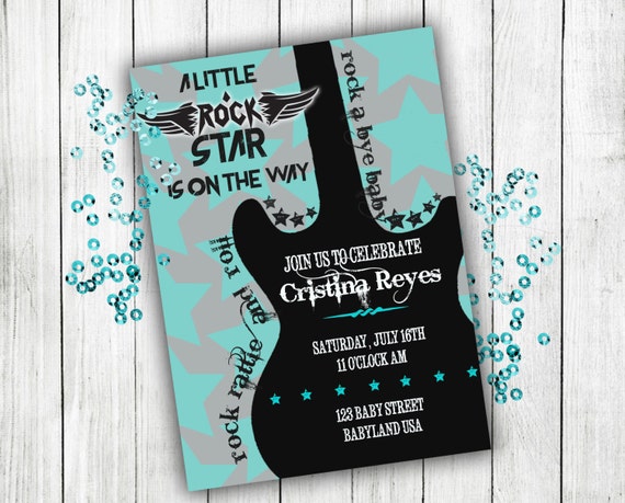 Amazon Com Rock Star Baby Shower Invitations Boy Guitar Handmade from images-na.ssl-images-amazon.com Rock n roll baby shower: Rock a bye baby shower invitation, rock n roll invite printable, born to rock, mom tattoo, guitar couples baby shower, gender neutral, boy invitedbyaudriana. Baby shower invitation, rock n roll baby shower, boy baby shower, baby shower invites, baby shower, baby boy, baby shower invitation boy, peasyprints. Listen to punk with daddy baby light bodysuit. 50% off with code zazmaysaving. Pick your favorite invitation design from our amazing selection or create your own from scratch! Baby shower invitation videos that are super easy to create in. You've got great invitation shapes like square and rectangle.